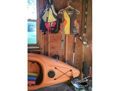 Kayak storage is very inexpensive, and it saves time. I keep all kayaking gear together. Kayaking life vests, shoes, even coolers are all kept together. No reason to leave something behind. I look back at the kayak storage wall. If something is there, I need to take it with us.