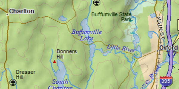 Buffumville Lake is West of Route 395 in Charlton MA. |